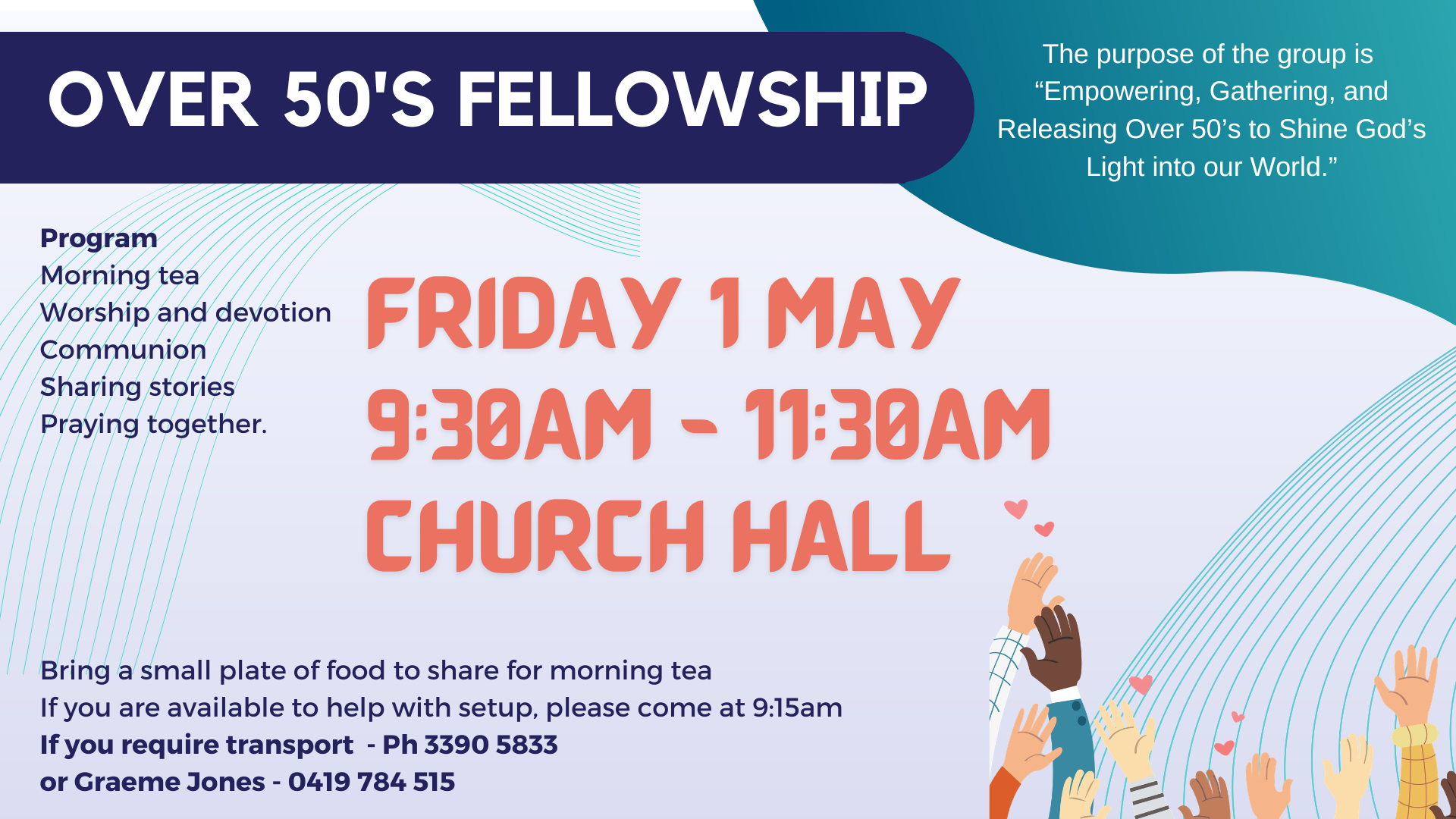 Over 50's Fellowship Friday 1 May 2026 9:30 am 11:30 am Wynnum Baptist Church 287 Kianawah Road Wynnum West, QLD, 4178 Australia (map) Google Calendar ICS